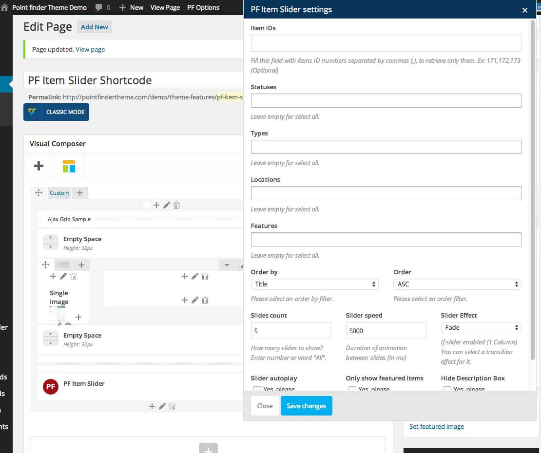 You can display the items that you select as slide by using PF Item Slider. You can easily perform add/edit processes through this shortcode we have added to Visual Composer interface.